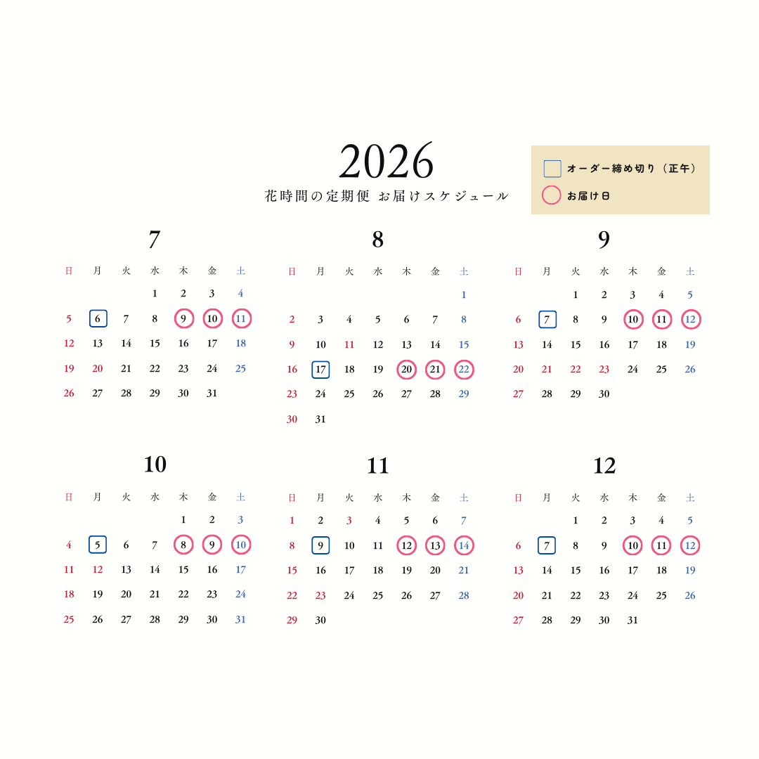 1月のお届けは1/8(木)、1/9(金)、1/10(土)。