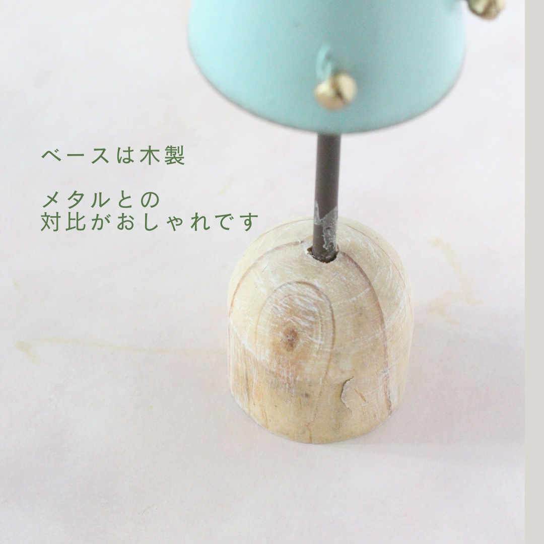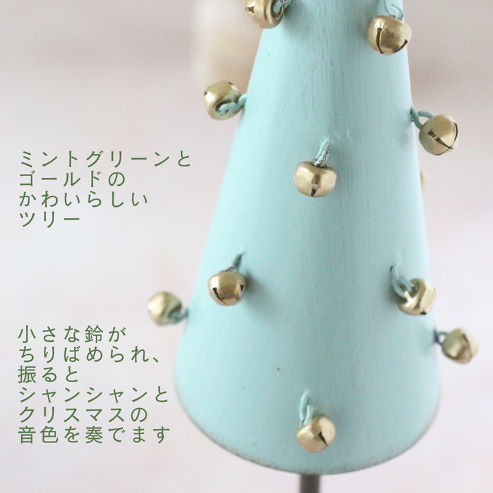 人気ショップ「コベントガーデン」のメテオブリキツリー。かわいらしいペパーミントグリーンのツリーにちりばめられているのは、鈴。振ると、シャンシャンとクリスマスの音色を奏でます。