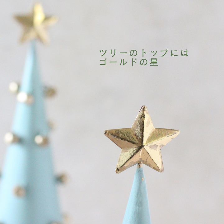 また、このツリーはアンティーク加工が施されています。そのため、ちょっと傾いた形も味わいがあります。