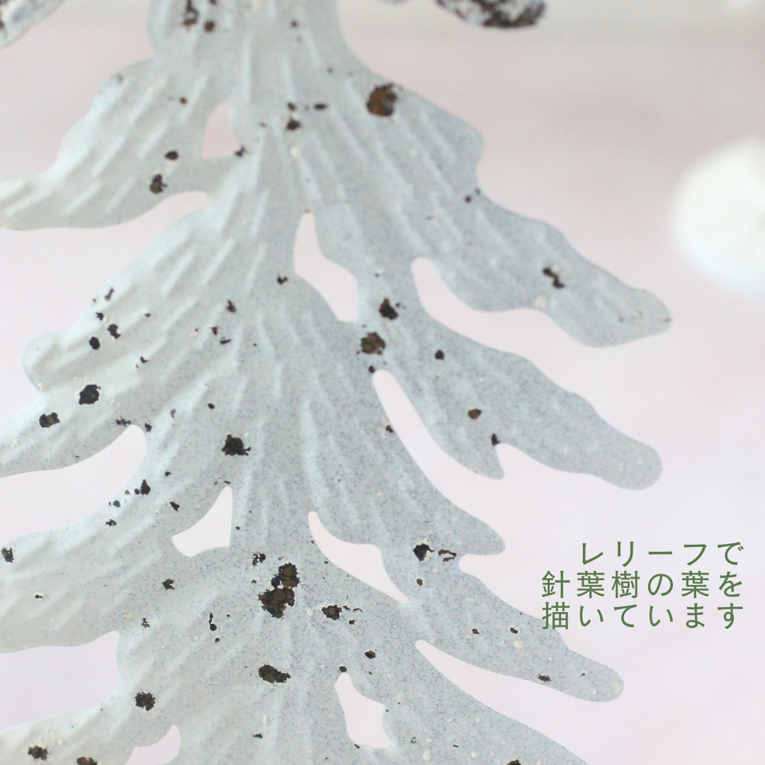 ツリーのトップなどにシャビーな加工を丁寧に、蚤の市に並ぶ雑貨のようなおしゃれさを演出しています。