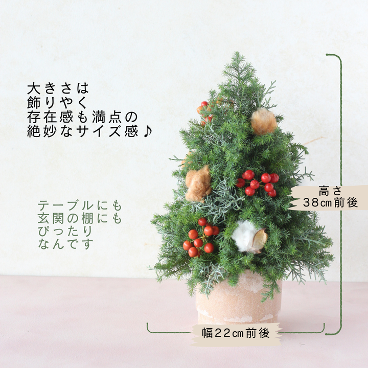 飾りやすく、存在感のあるサイズ感。テーブルの上や玄関の棚など、好きな場所に飾って、クリスマスシーズンを楽しめる。